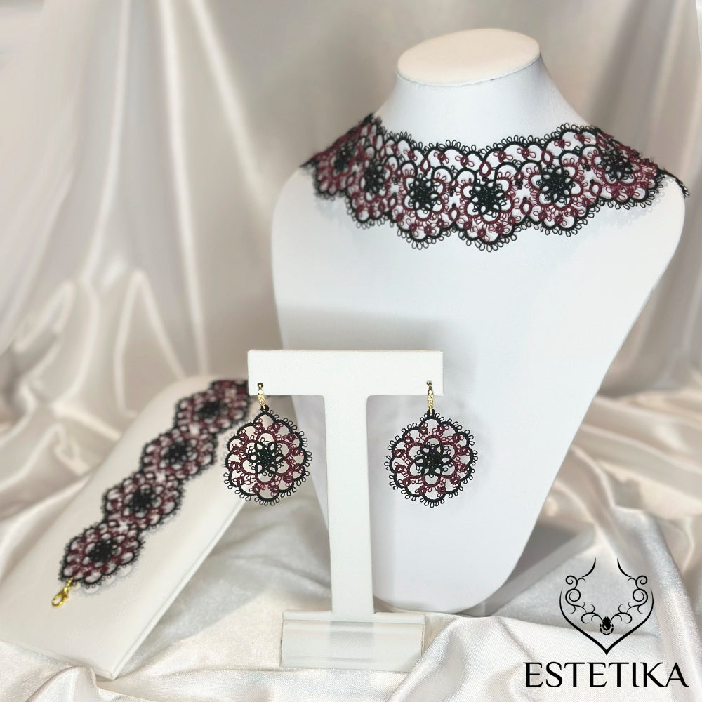 Tatting Lace Set with Choker NecklaceTatting Lace Set with Choker Necklace